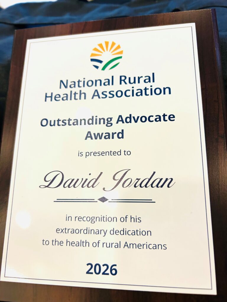 Health Fund President and CEO David Jordan received the Rural Health Advocate of the Year award by the National Rural Health Association Feb. 10 during the NRHA’s Rural Health Policy Institute.